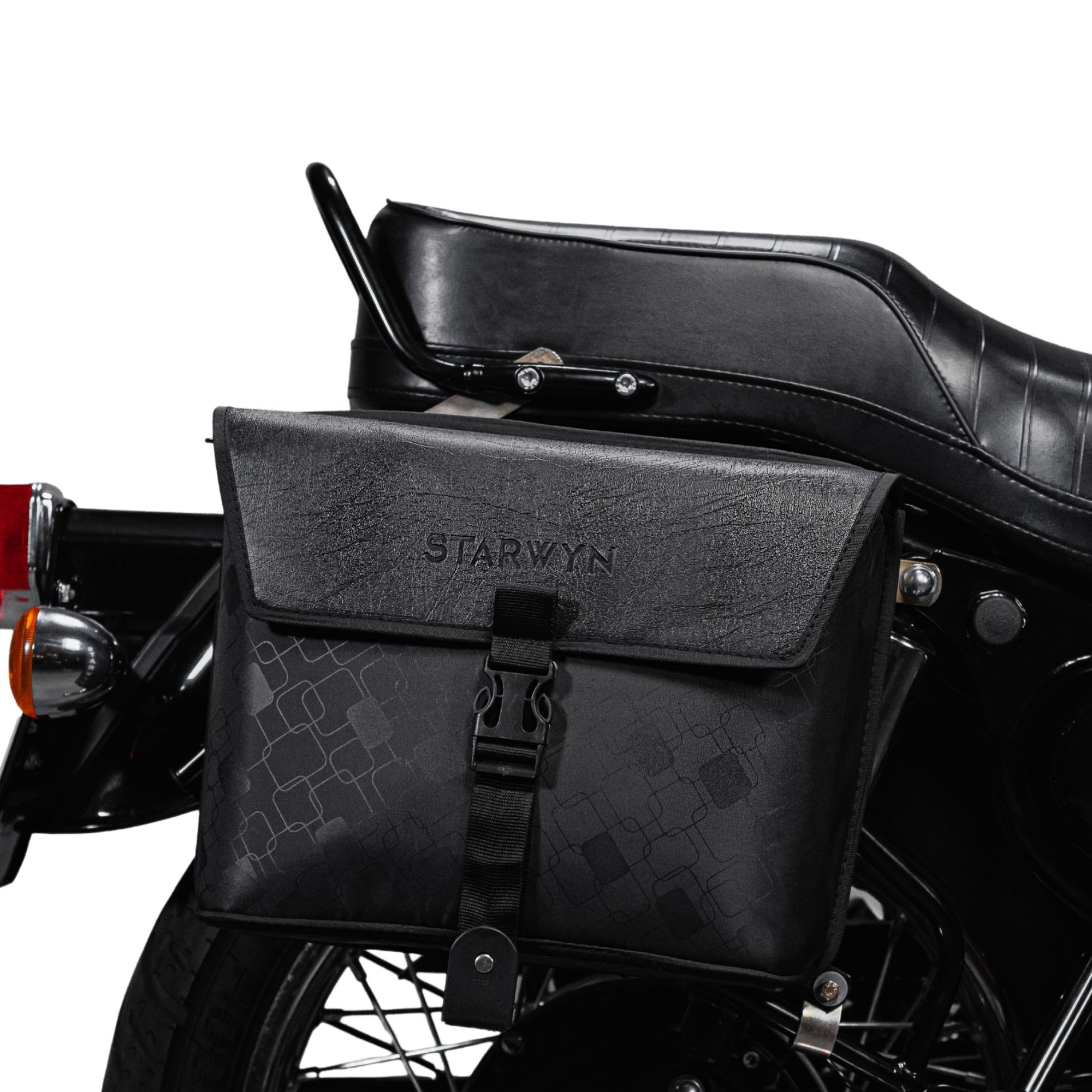 Starwyn Boulder Stark Black is the most premium and rugged side bag in the lineup, made from scratch-proof, water-resistant fabric. It features a twin-locking system, taffeta inner lining, a waterproof rain cover, and a unique mounting frame for maximum protection and functionality.